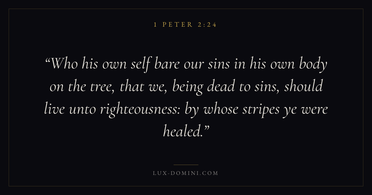 Who his own self bare our sins in his own body on the tree, that we, being dead to sins, should live unto righteousness: by whose stripes ye were healed.