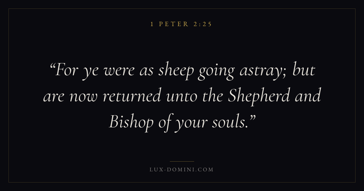 For ye were as sheep going astray; but are now returned unto the Shepherd and Bishop of your souls.
