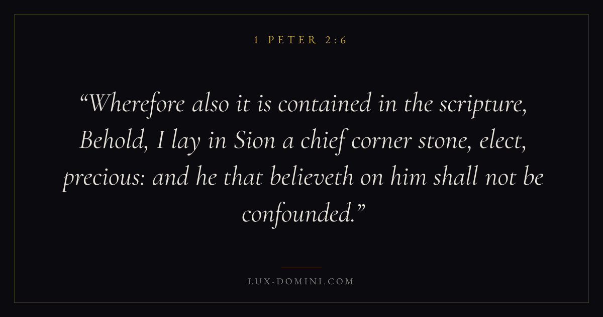 Wherefore also it is contained in the scripture, Behold, I lay in Sion a chief corner stone, elect, precious: and he that believeth on him shall not be confounded.