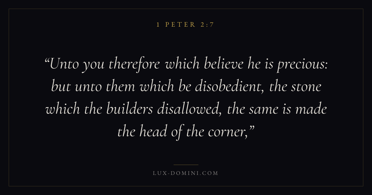 Unto you therefore which believe he is precious: but unto them which be disobedient, the stone which the builders disallowed, the same is made the head of the corner,