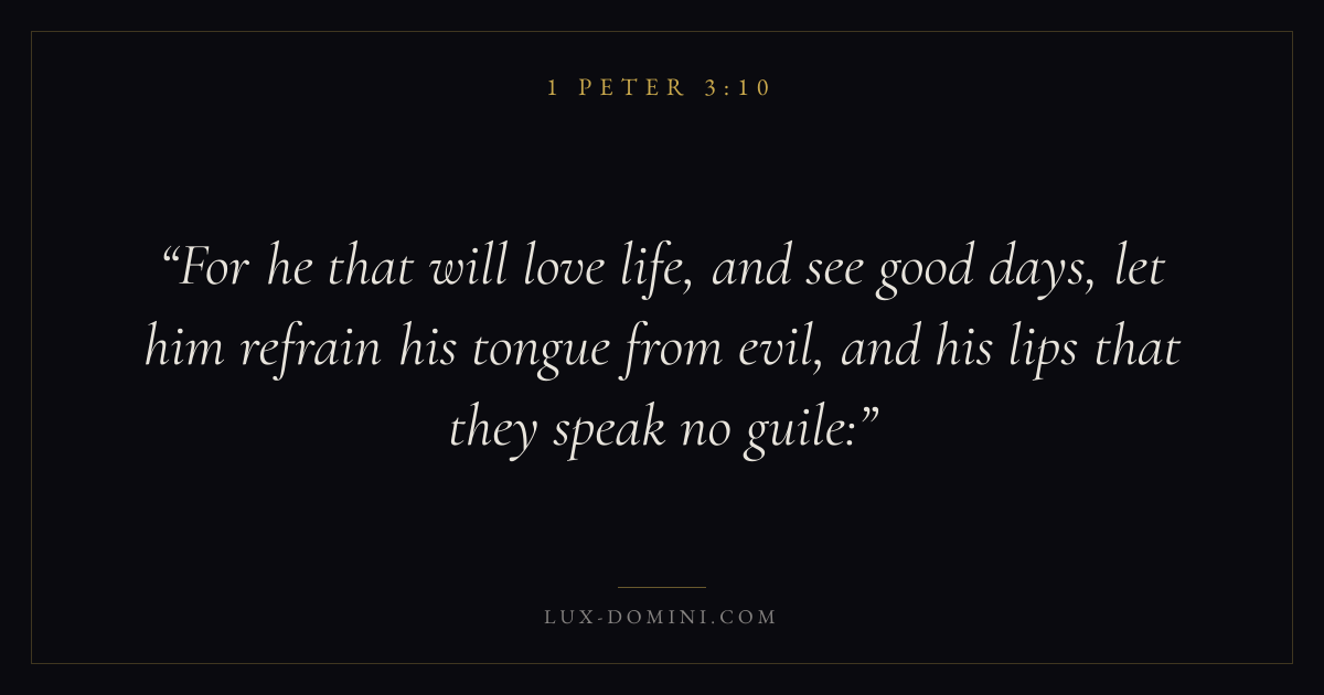For he that will love life, and see good days, let him refrain his tongue from evil, and his lips that they speak no guile: