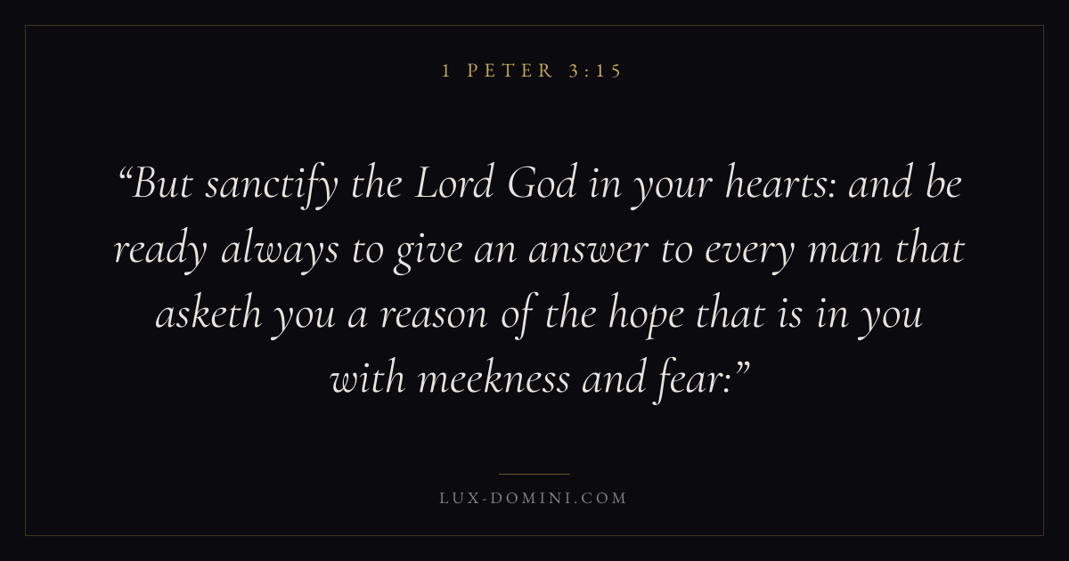 But sanctify the Lord God in your hearts: and be ready always to give an answer to every man that asketh you a reason of the hope that is in you with meekness and fear: