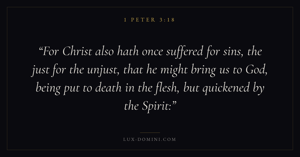 For Christ also hath once suffered for sins, the just for the unjust, that he might bring us to God, being put to death in the flesh, but quickened by the Spirit: