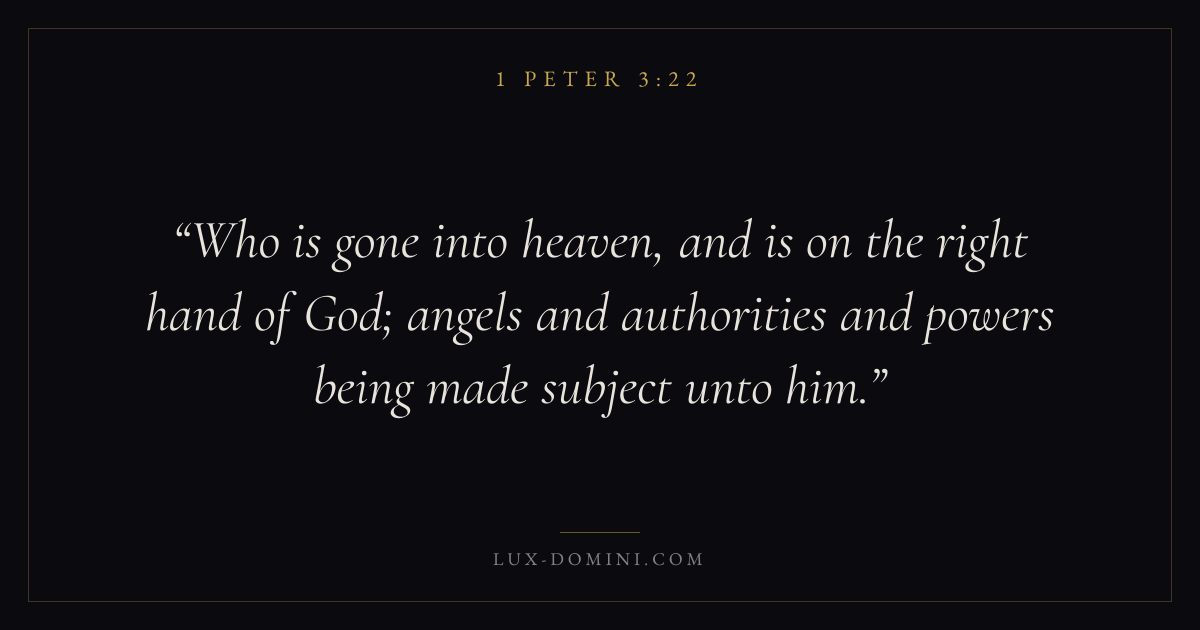 Who is gone into heaven, and is on the right hand of God; angels and authorities and powers being made subject unto him.