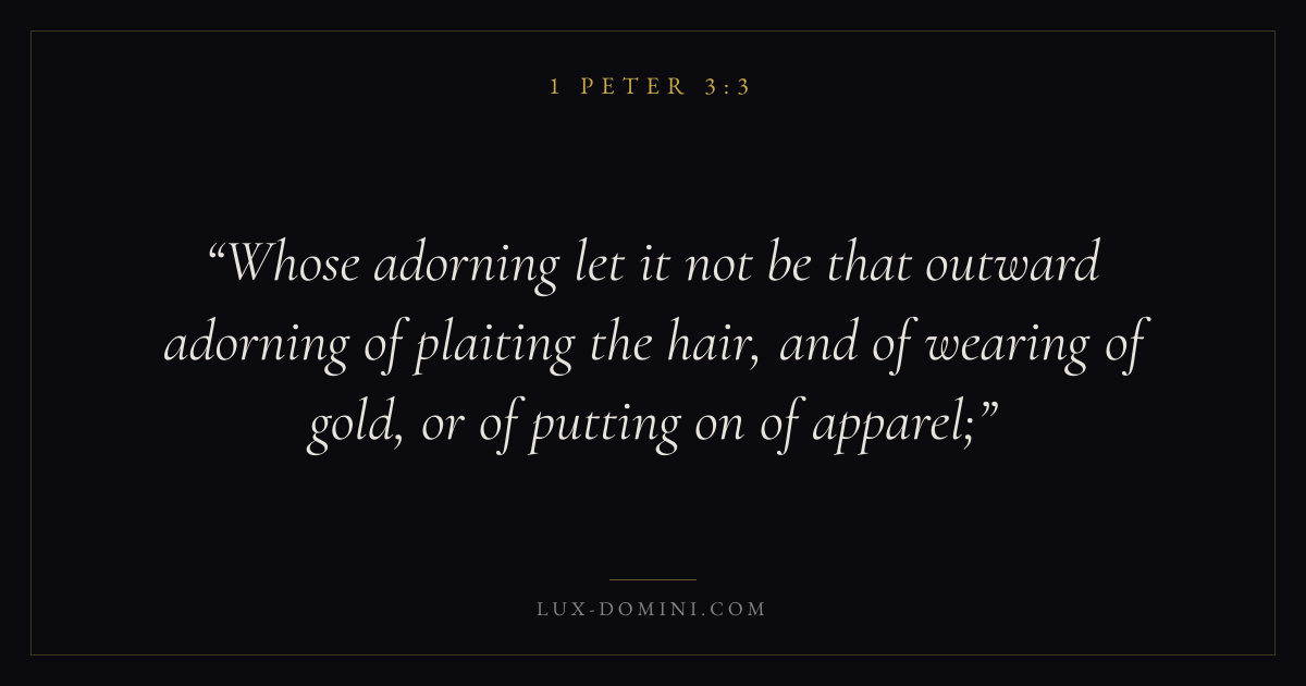 The apostle refers here to a propensity which exists in the heart of woman to seek that which would be esteemed ornamental, or that which will appear well in the sight of others, and commend us to them. The desire of this is laid deep in human nature and therefore, when properly regulated is not wrong. The only question is, what is the true and appropriate ornament? What should be primarily sought as the right kind of adorning? The apostle does not condemn true ornament, nor does he condemn the desire to appear in such a way as to secure the esteem of others. God does not condemn real ornament. The universe is full of it.