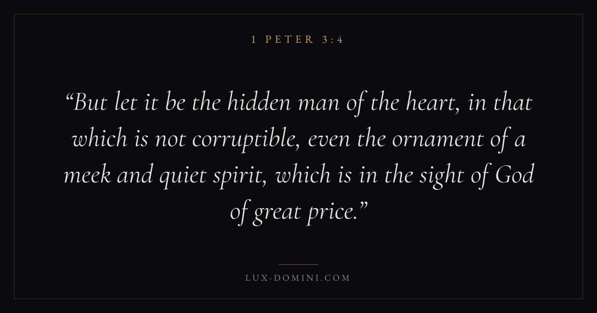 But let it be the hidden man of the heart, in that which is not corruptible, even the ornament of a meek and quiet spirit, which is in the sight of God of great price.