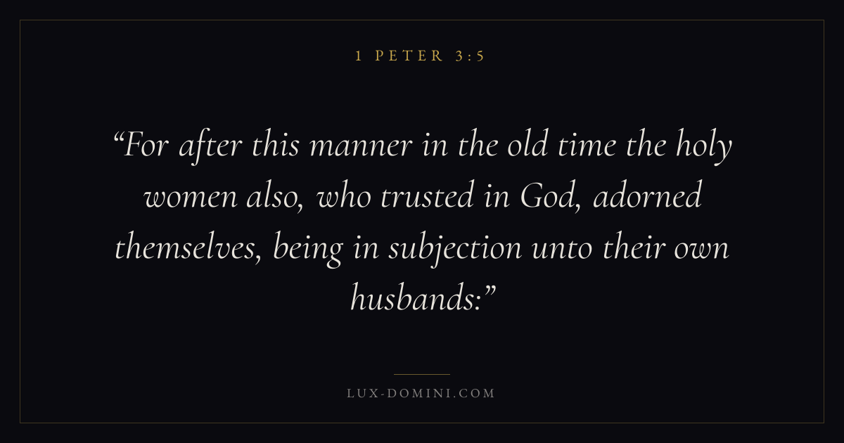For after this manner in the old time the holy women also, who trusted in God, adorned themselves, being in subjection unto their own husbands: