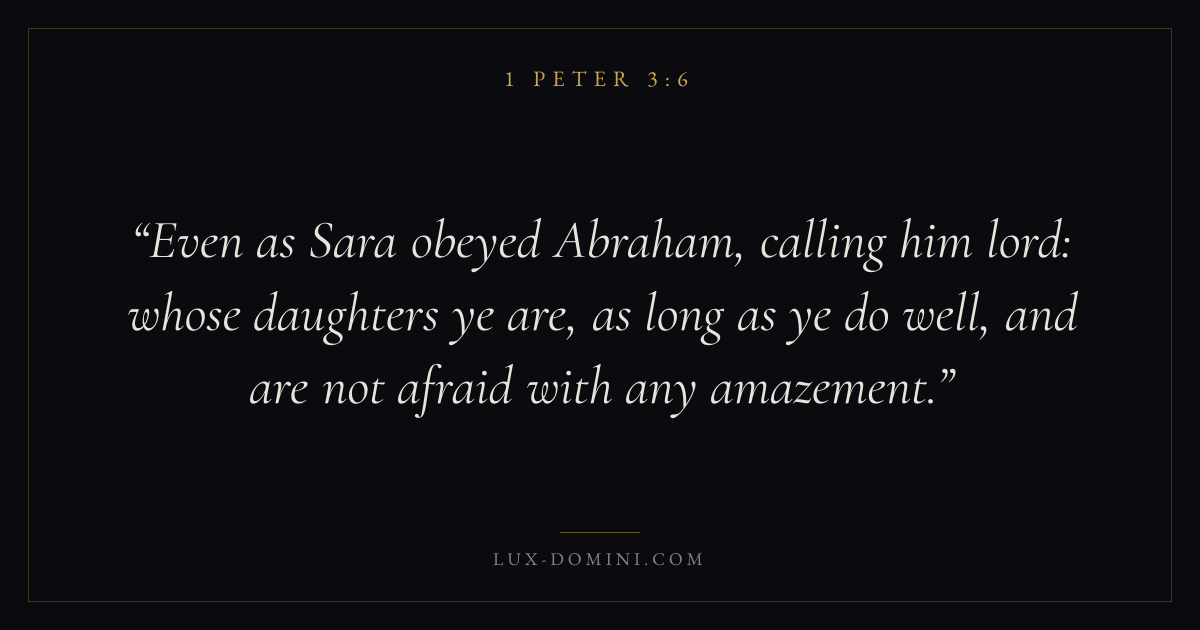 Even as Sara obeyed Abraham, calling him lord: whose daughters ye are, as long as ye do well, and are not afraid with any amazement.