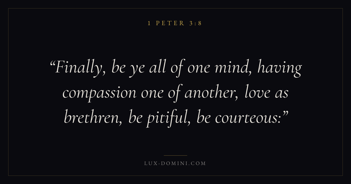 Finally, be ye all of one mind, having compassion one of another, love as brethren, be pitiful, be courteous: