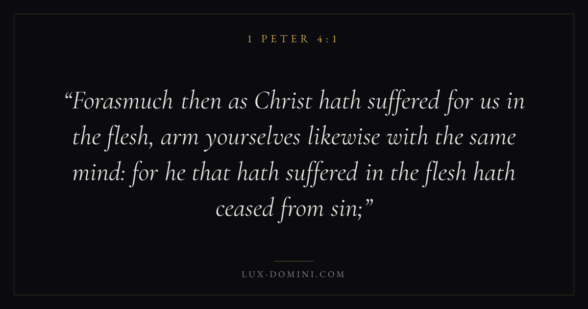 Forasmuch then as Christ hath suffered for us in the flesh, arm yourselves likewise with the same mind: for he that hath suffered in the flesh hath ceased from sin;