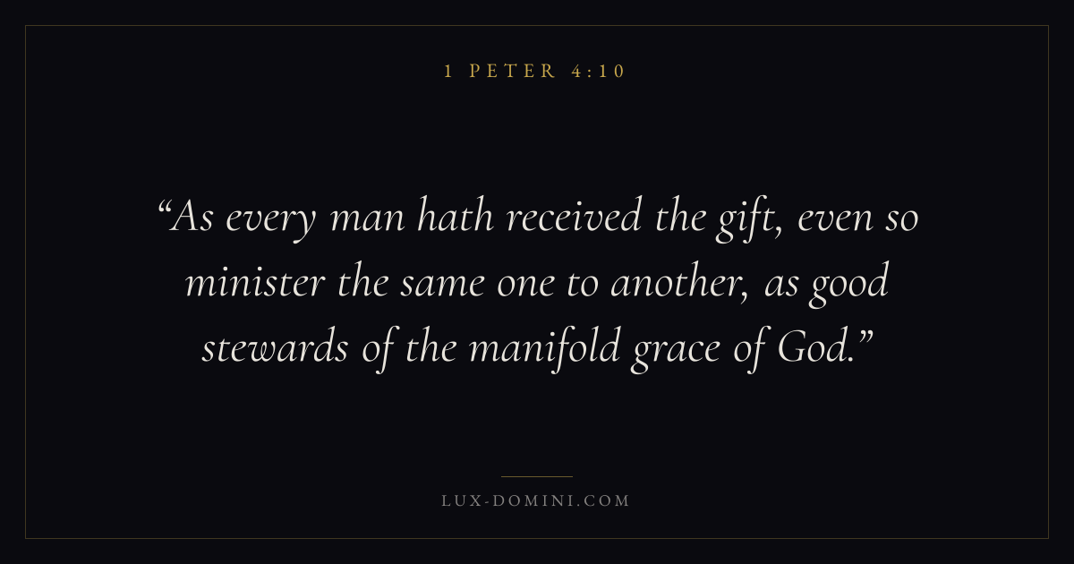 As every man hath received the gift, even so minister the same one to another, as good stewards of the manifold grace of God.