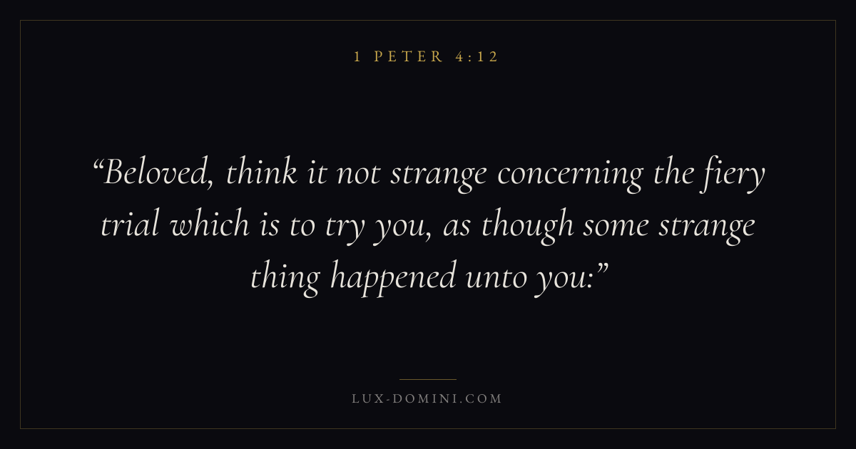 Beloved, think it not strange concerning the fiery trial which is to try you, as though some strange thing happened unto you: