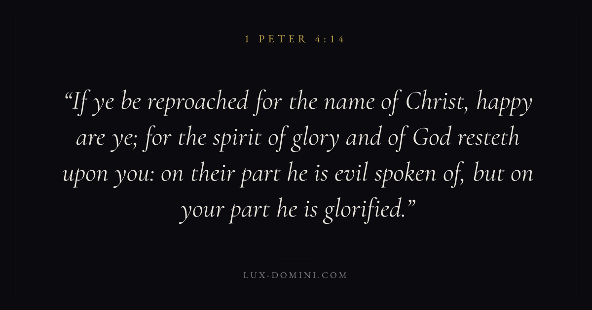 If ye be reproached for the name of Christ, happy are ye; for the spirit of glory and of God resteth upon you: on their part he is evil spoken of, but on your part he is glorified.