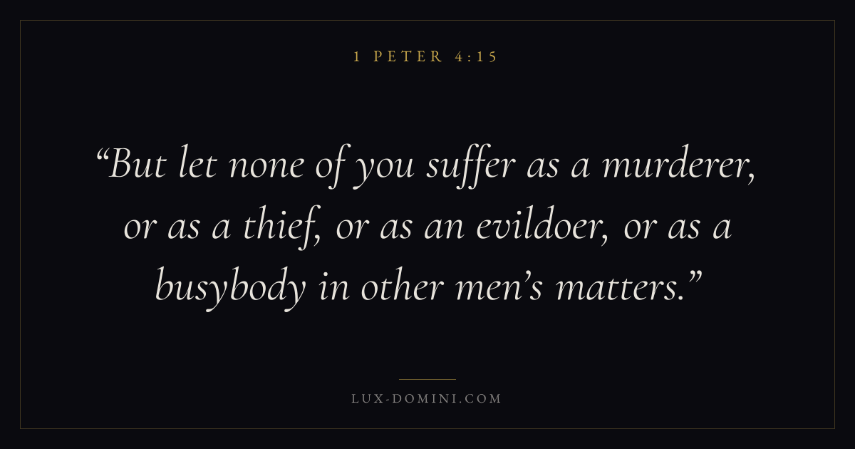But let none of you suffer as a murderer, or as a thief, or as an evildoer, or as a busybody in other men’s matters.