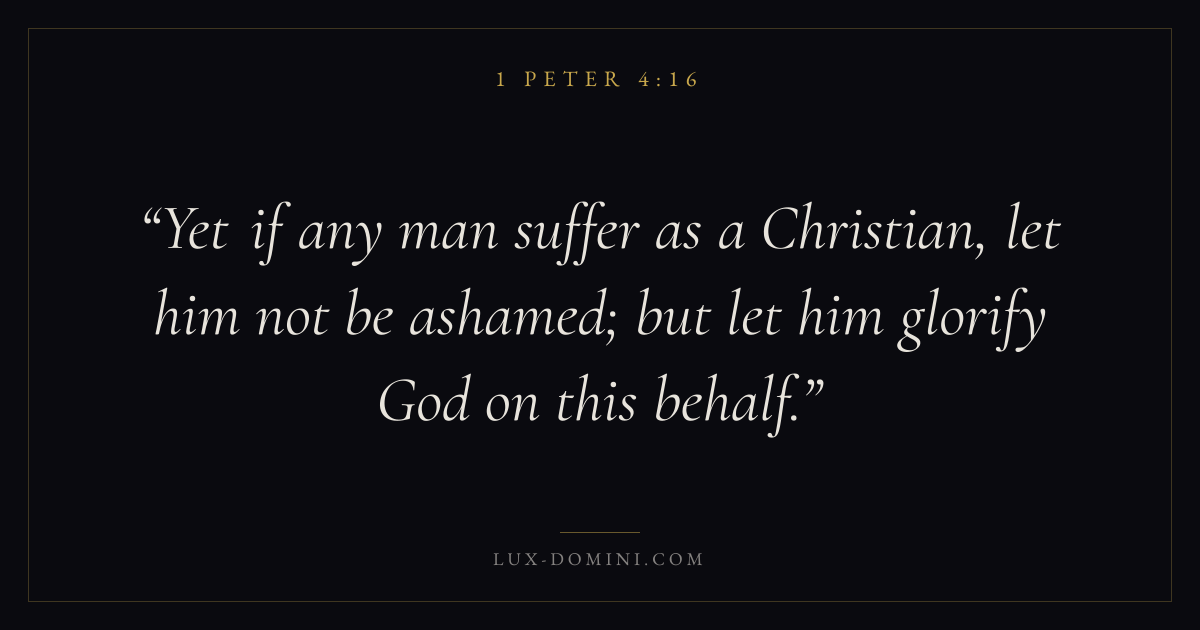 Yet if any man suffer as a Christian, let him not be ashamed; but let him glorify God on this behalf.