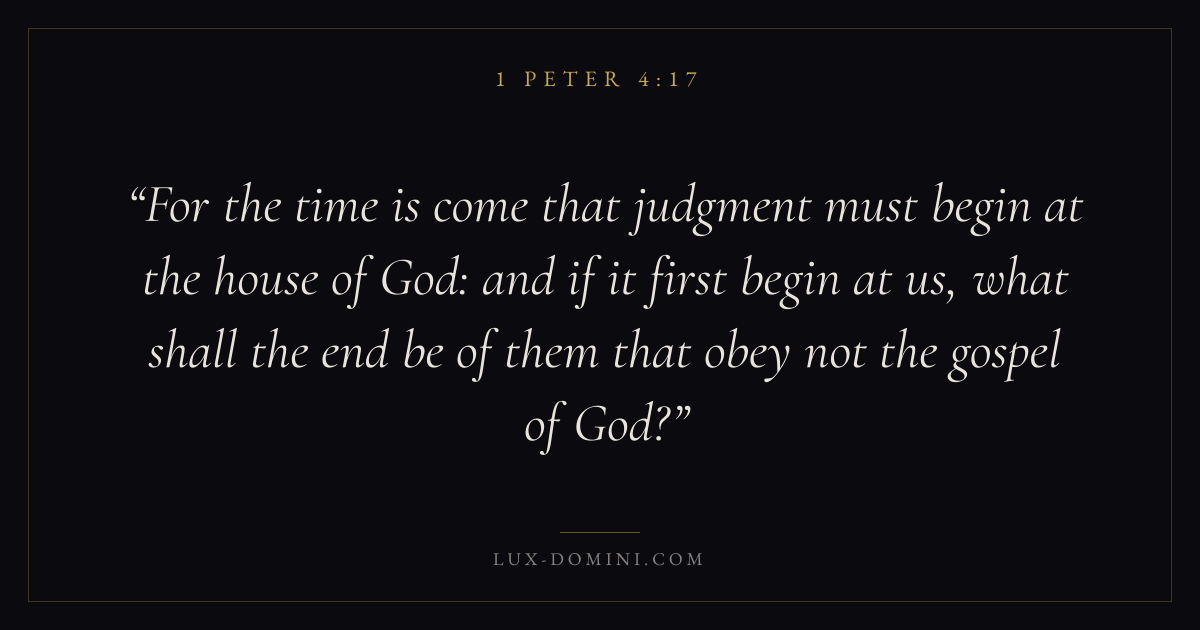 For the time is come that judgment must begin at the house of God: and if it first begin at us, what shall the end be of them that obey not the gospel of God?