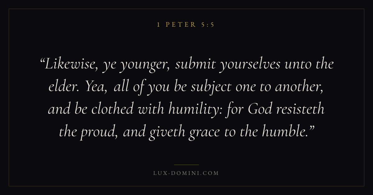 Likewise, ye younger, submit yourselves unto the elder. Yea, all of you be subject one to another, and be clothed with humility: for God resisteth the proud, and giveth grace to the humble.