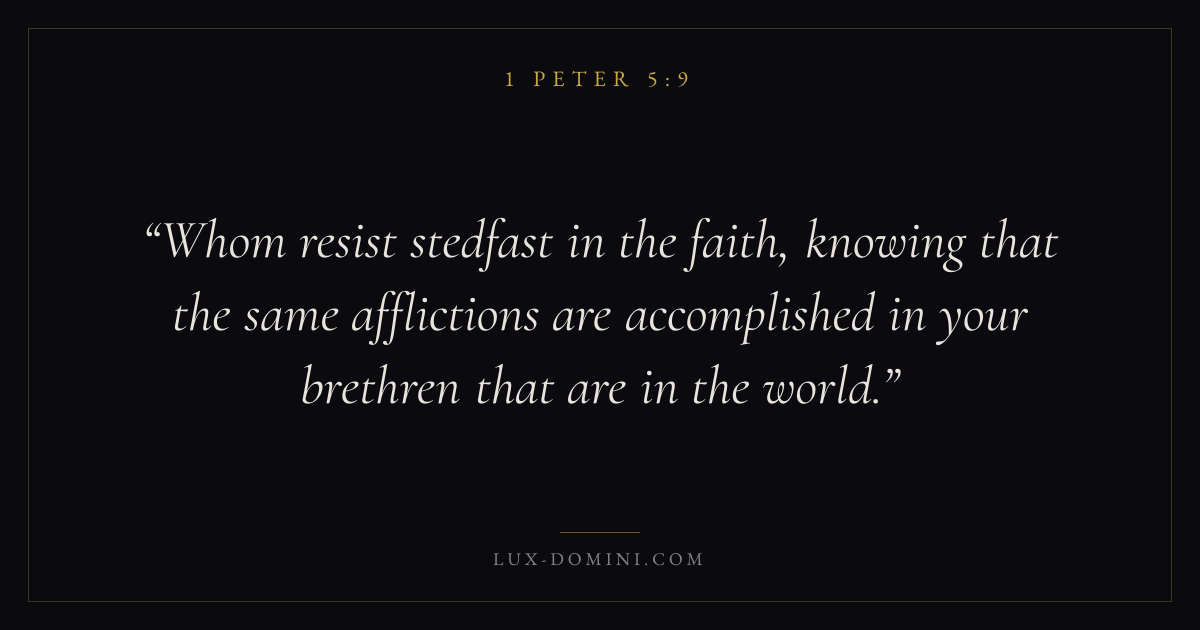 Whom resist stedfast in the faith, knowing that the same afflictions are accomplished in your brethren that are in the world.