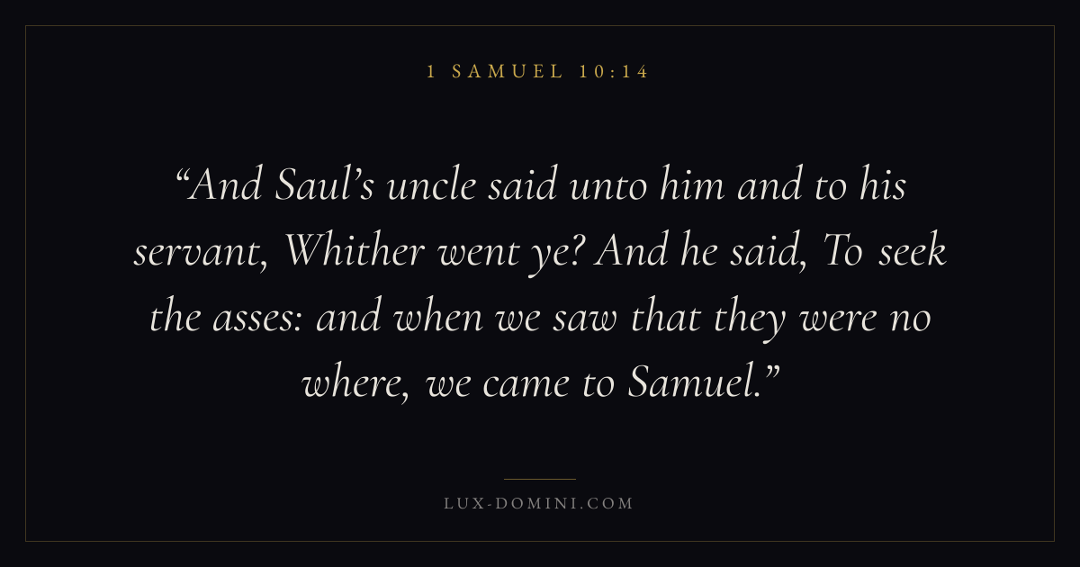 And Saul’s uncle said unto him and to his servant, Whither went ye? And he said, To seek the asses: and when we saw that they were no where, we came to Samuel.