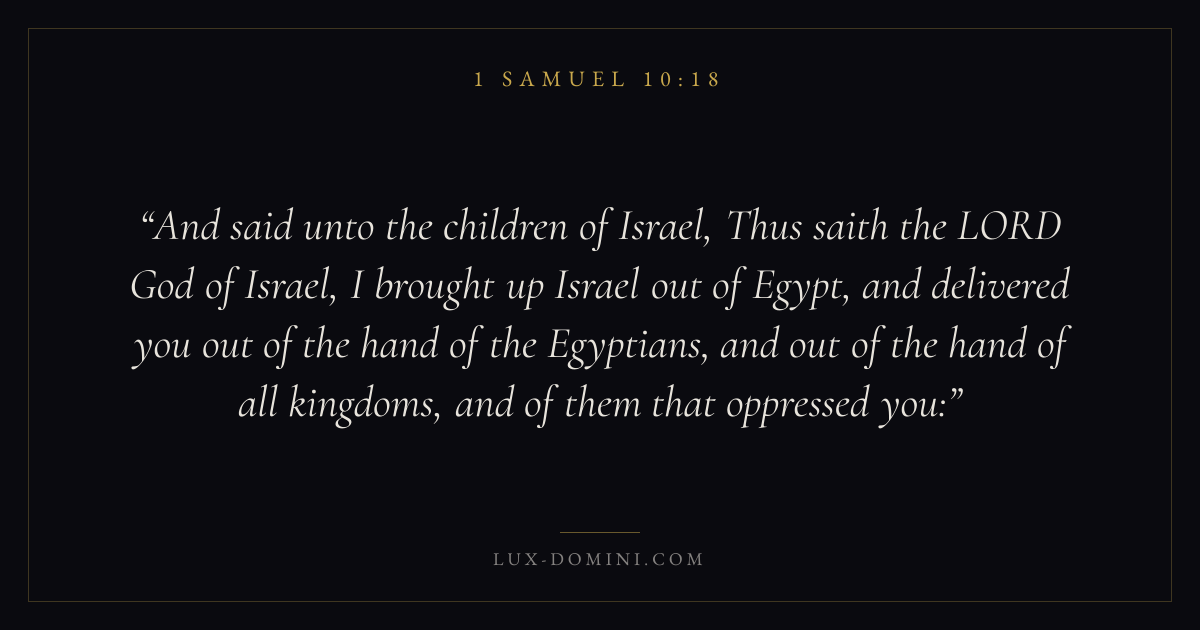 And said unto the children of Israel, Thus saith the LORD God of Israel, I brought up Israel out of Egypt, and delivered you out of the hand of the Egyptians, and out of the hand of all kingdoms, and of them that oppressed you: