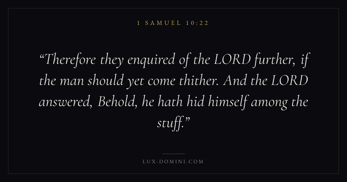 Therefore they enquired of the LORD further, if the man should yet come thither. And the LORD answered, Behold, he hath hid himself among the stuff.