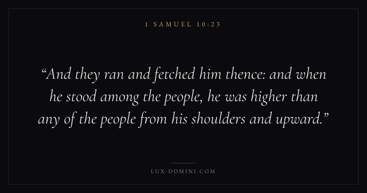 And they ran and fetched him thence: and when he stood among the people, he was higher than any of the people from his shoulders and upward.
