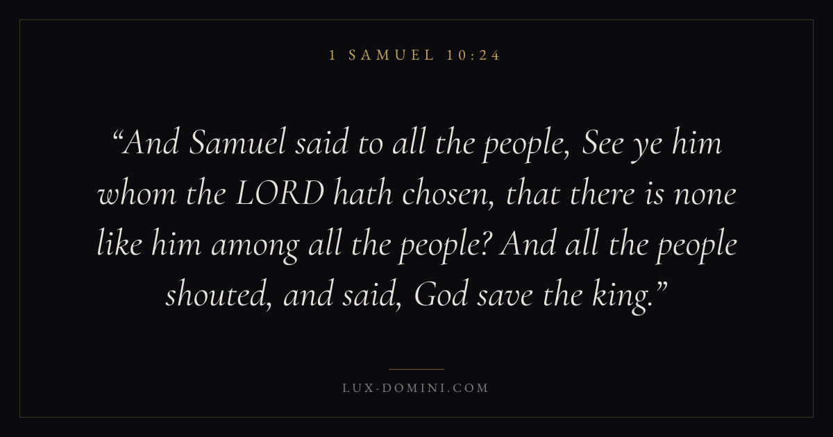 And Samuel said to all the people, See ye him whom the LORD hath chosen, that there is none like him among all the people? And all the people shouted, and said, God save the king.