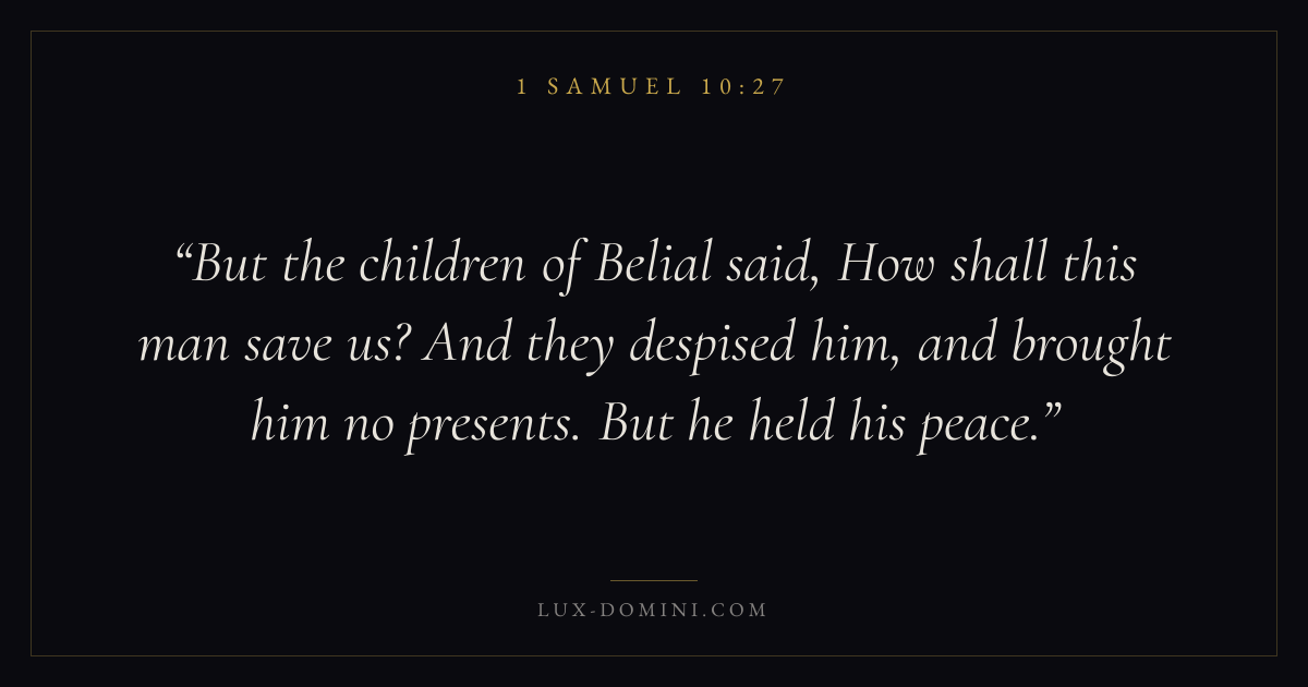 But the children of Belial said, How shall this man save us? And they despised him, and brought him no presents. But he held his peace.