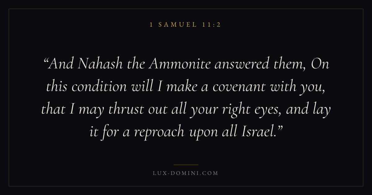 And Nahash the Ammonite answered them, On this condition will I make a covenant with you, that I may thrust out all your right eyes, and lay it for a reproach upon all Israel.