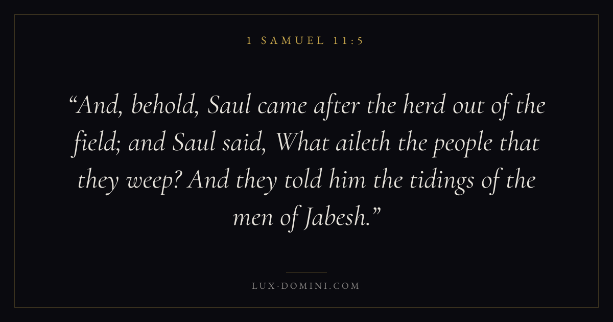 And, behold, Saul came after the herd out of the field; and Saul said, What aileth the people that they weep? And they told him the tidings of the men of Jabesh.