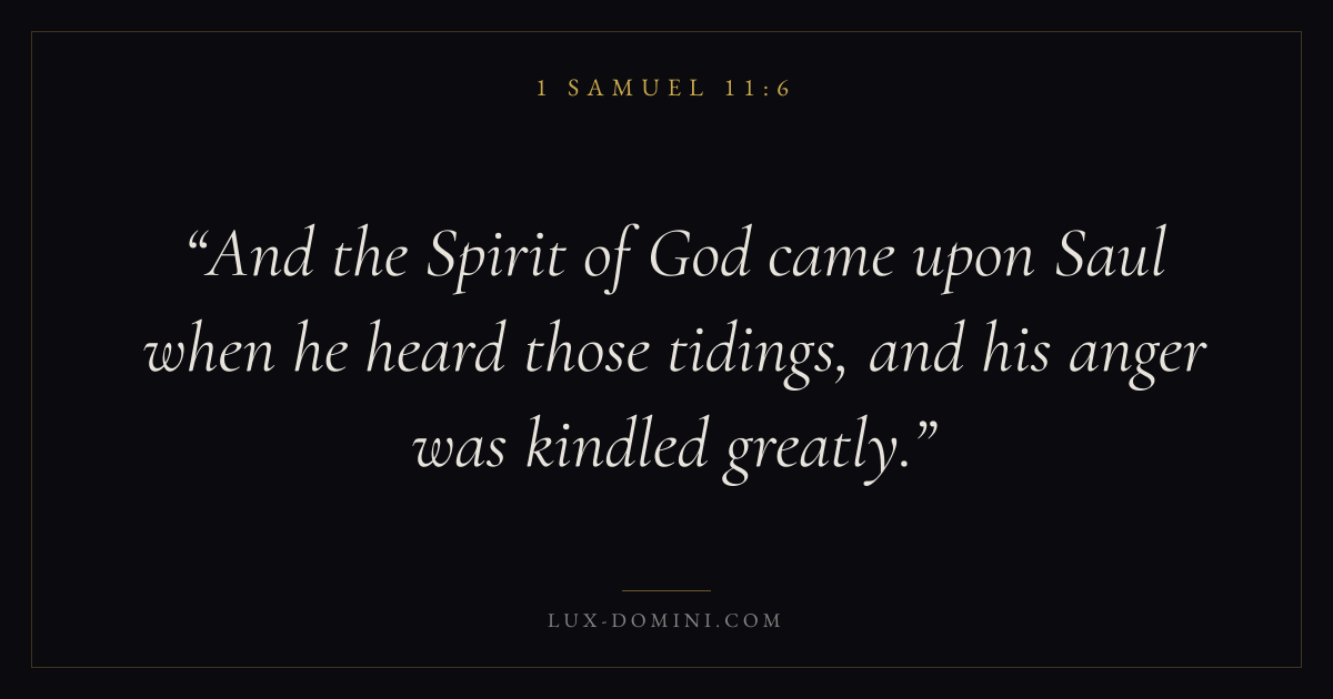 And the Spirit of God came upon Saul when he heard those tidings, and his anger was kindled greatly.