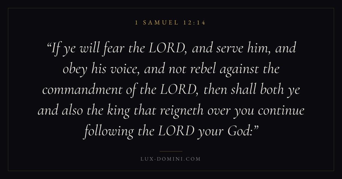 If ye will fear the LORD, and serve him, and obey his voice, and not rebel against the commandment of the LORD, then shall both ye and also the king that reigneth over you continue following the LORD your God: