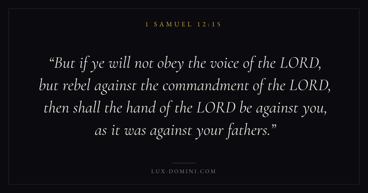 But if ye will not obey the voice of the LORD, but rebel against the commandment of the LORD, then shall the hand of the LORD be against you, as it was against your fathers.