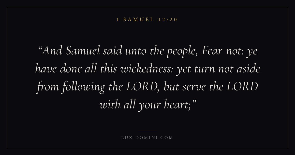 And Samuel said unto the people, Fear not: ye have done all this wickedness: yet turn not aside from following the LORD, but serve the LORD with all your heart;