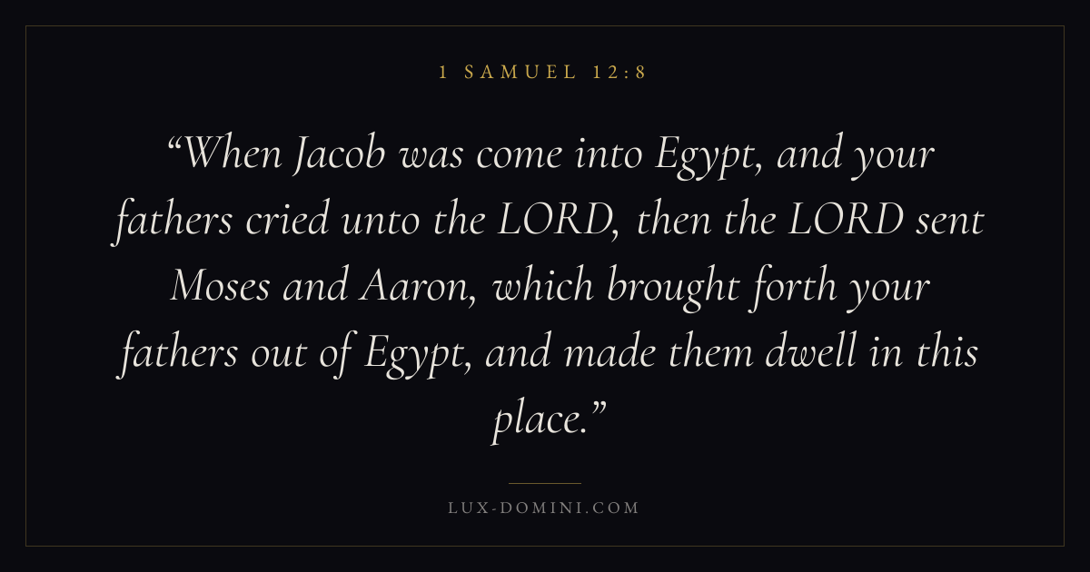 When Jacob was come into Egypt, and your fathers cried unto the LORD, then the LORD sent Moses and Aaron, which brought forth your fathers out of Egypt, and made them dwell in this place.