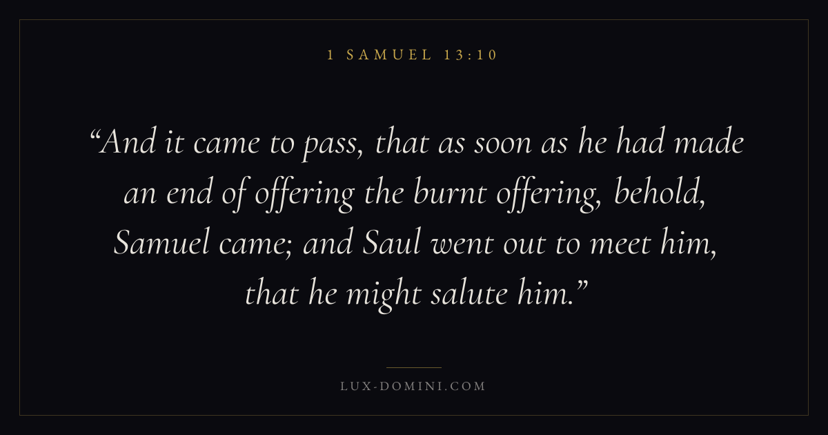 And it came to pass, that as soon as he had made an end of offering the burnt offering, behold, Samuel came; and Saul went out to meet him, that he might salute him.