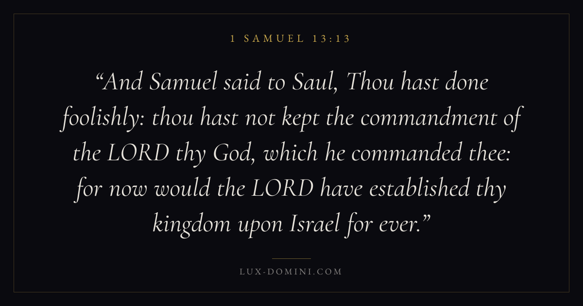 And Samuel said to Saul, Thou hast done foolishly: thou hast not kept the commandment of the LORD thy God, which he commanded thee: for now would the LORD have established thy kingdom upon Israel for ever.