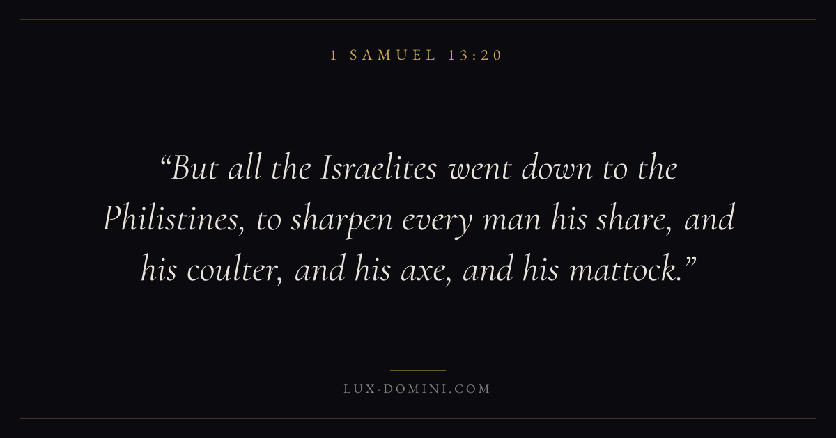 But all the Israelites went down to the Philistines, to sharpen every man his share, and his coulter, and his axe, and his mattock.