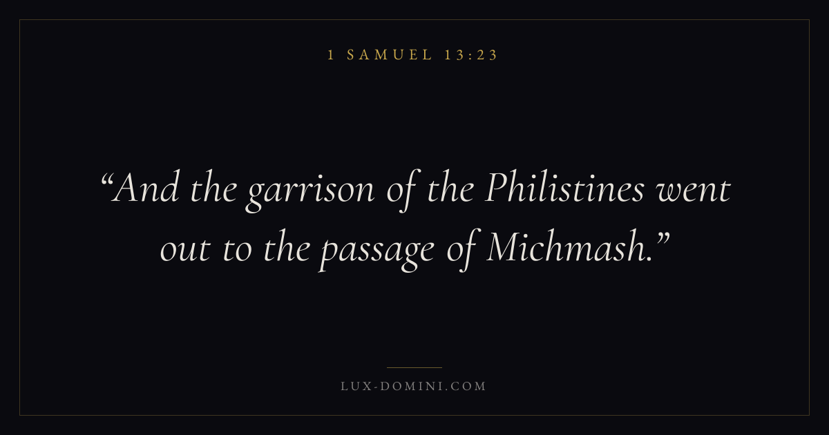 And the garrison of the Philistines went out to the passage of Michmash.