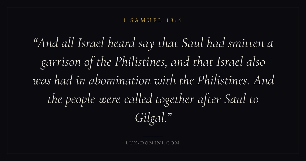 And all Israel heard say that Saul had smitten a garrison of the Philistines, and that Israel also was had in abomination with the Philistines. And the people were called together after Saul to Gilgal.