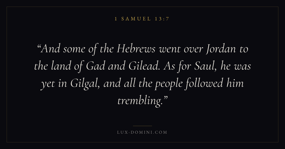 And some of the Hebrews went over Jordan to the land of Gad and Gilead. As for Saul, he was yet in Gilgal, and all the people followed him trembling.