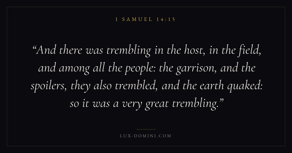 And there was trembling in the host, in the field, and among all the people: the garrison, and the spoilers, they also trembled, and the earth quaked: so it was a very great trembling.