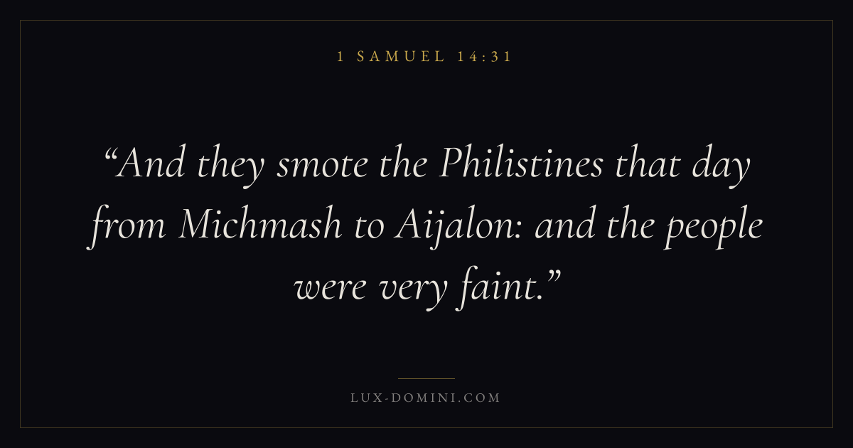 And they smote the Philistines that day from Michmash to Aijalon: and the people were very faint.