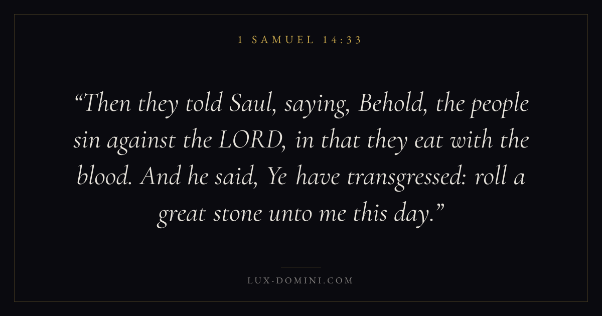 Then they told Saul, saying, Behold, the people sin against the LORD, in that they eat with the blood. And he said, Ye have transgressed: roll a great stone unto me this day.