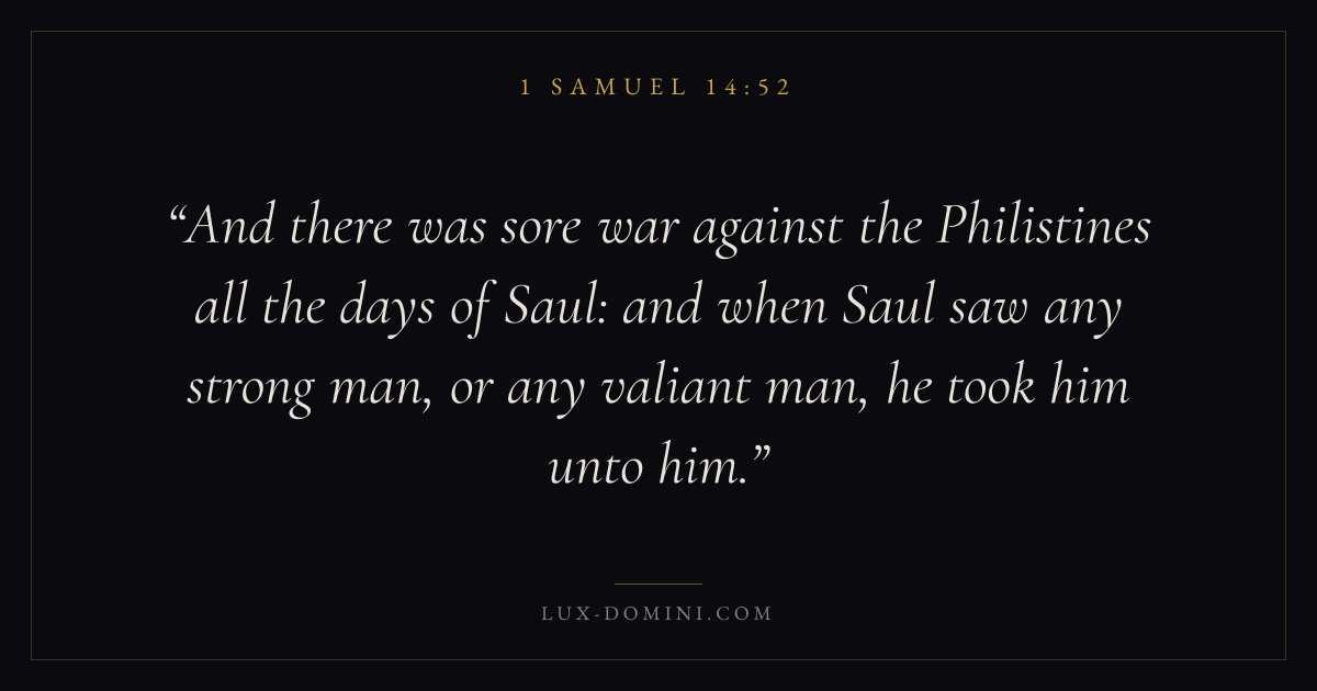 And there was sore war against the Philistines all the days of Saul: and when Saul saw any strong man, or any valiant man, he took him unto him.