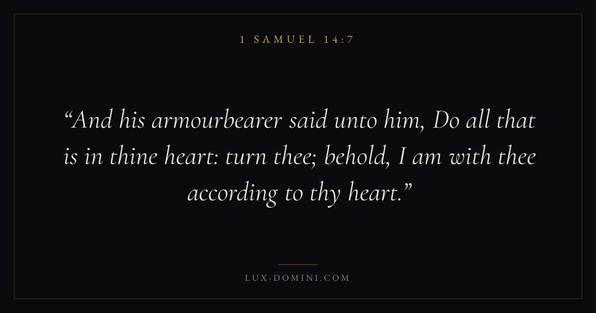 And his armourbearer said unto him, Do all that is in thine heart: turn thee; behold, I am with thee according to thy heart.