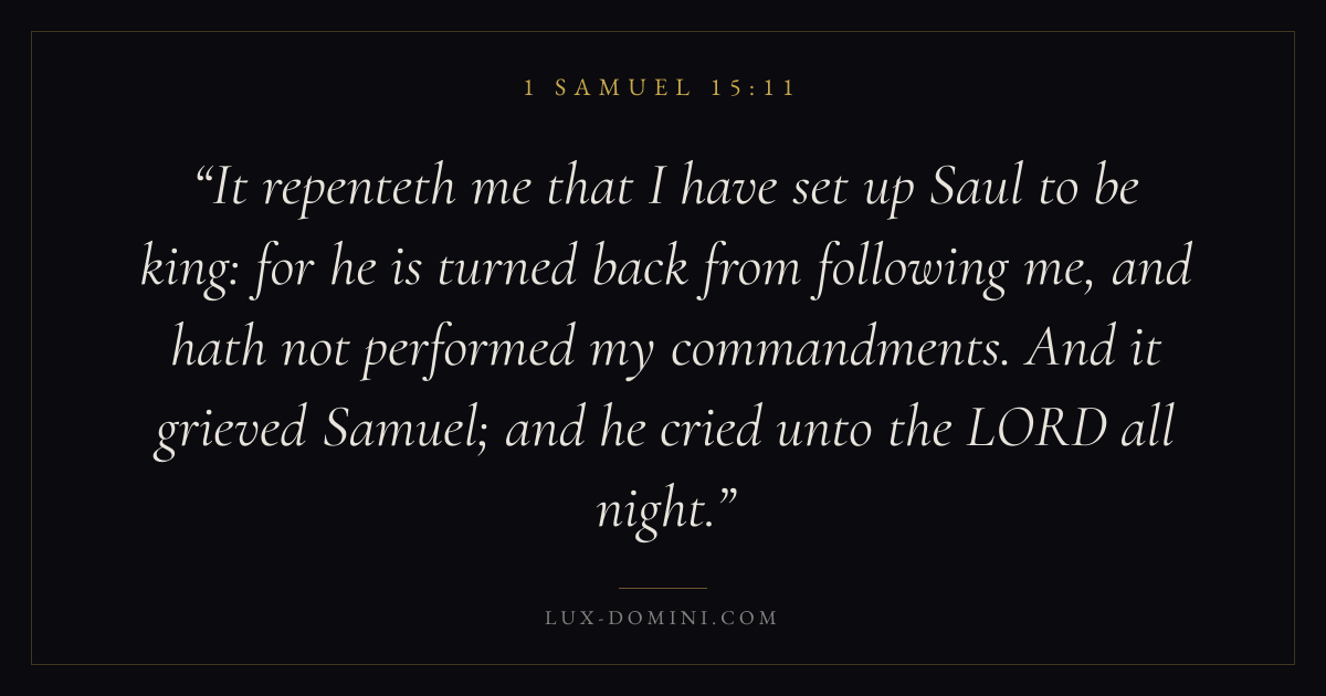 It repenteth me that I have set up Saul to be king: for he is turned back from following me, and hath not performed my commandments. And it grieved Samuel; and he cried unto the LORD all night.
