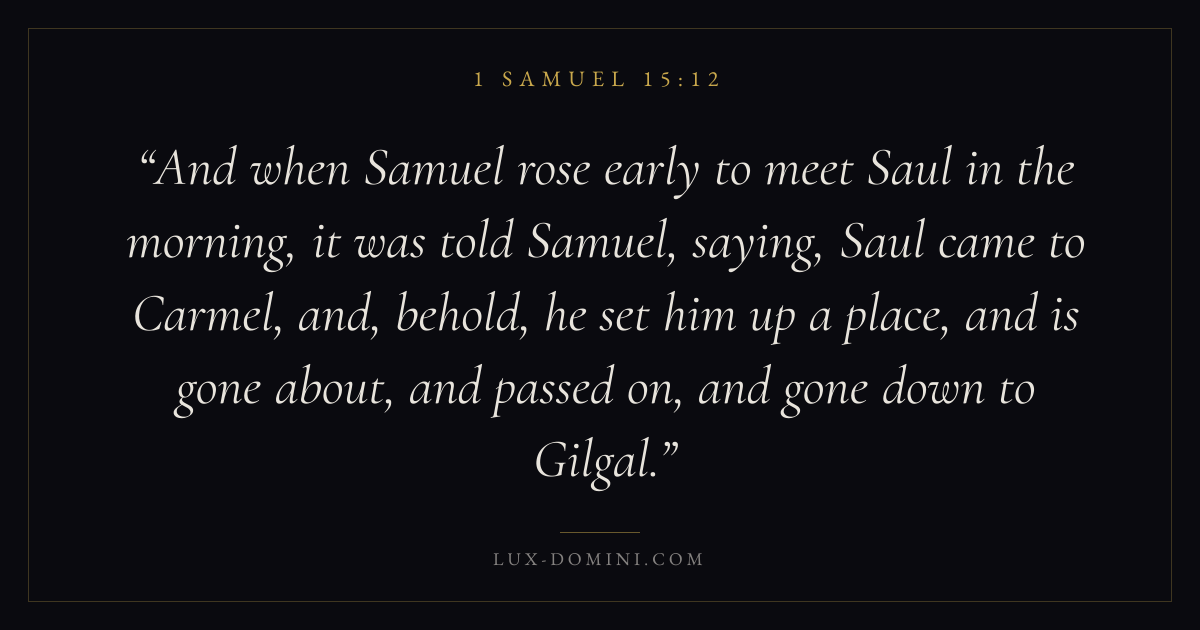And when Samuel rose early to meet Saul in the morning, it was told Samuel, saying, Saul came to Carmel, and, behold, he set him up a place, and is gone about, and passed on, and gone down to Gilgal.