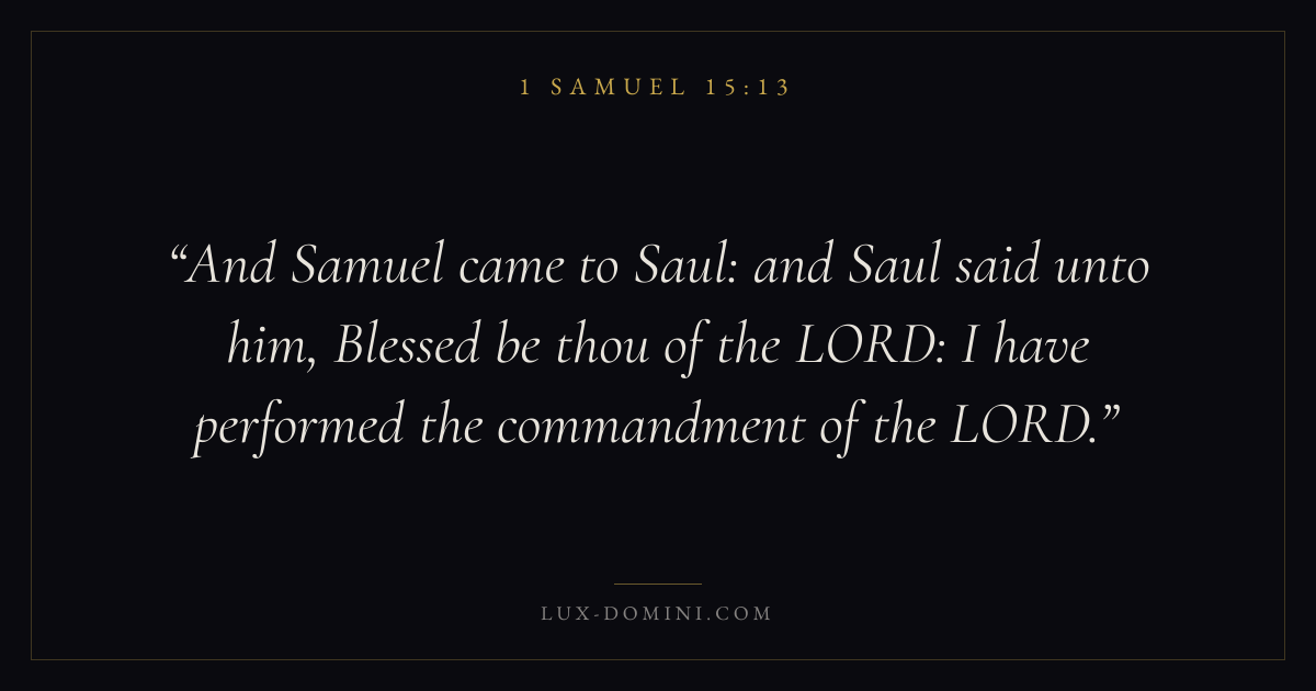 And Samuel came to Saul: and Saul said unto him, Blessed be thou of the LORD: I have performed the commandment of the LORD.