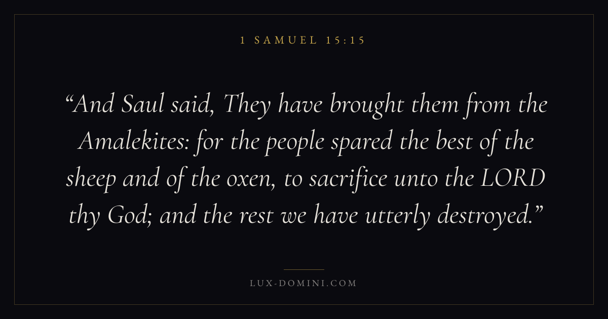 And Saul said, They have brought them from the Amalekites: for the people spared the best of the sheep and of the oxen, to sacrifice unto the LORD thy God; and the rest we have utterly destroyed.
